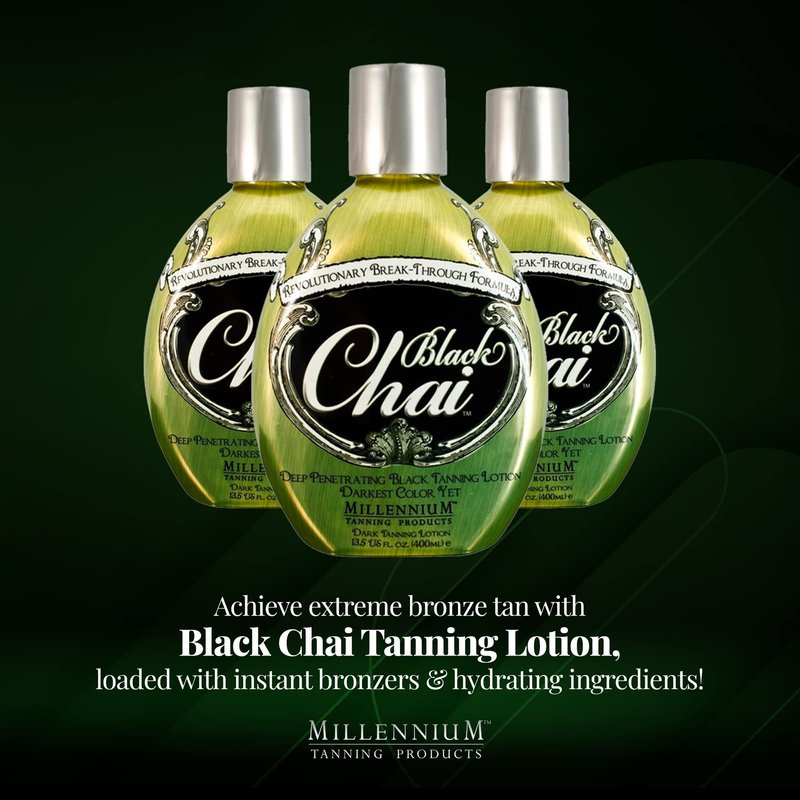Millennium Tanning Black Chai Tanning Lotion with Bronzers, Essential Oils, & Extracts (13.5 Ounces)