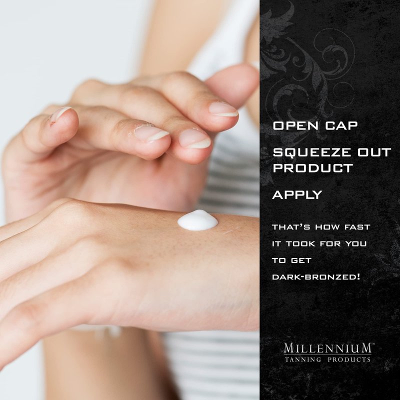 - Offers A Bronze Glow - Millennium Tanning’s dark tanner that works as a bronzer, too