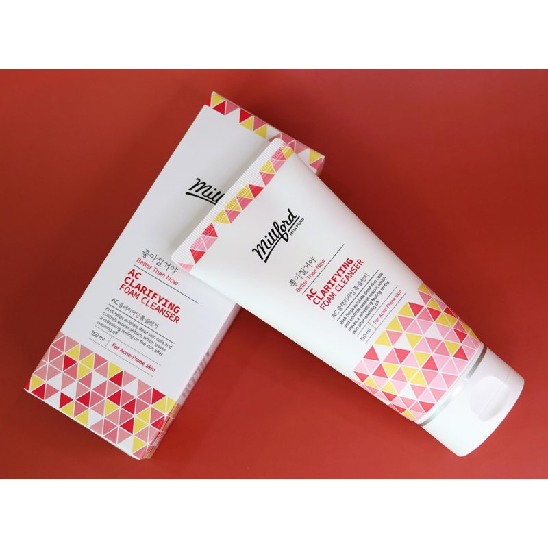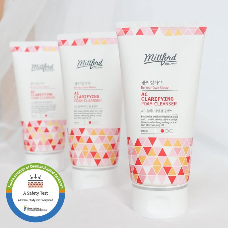 Millford AC Clarifying Foam Cleanser 150ml/5.1 fl.Oz, Daily Facial Cleanser for Oily Skin, Unscented, Salicylic Cleanser, BHA, Korean Skincare