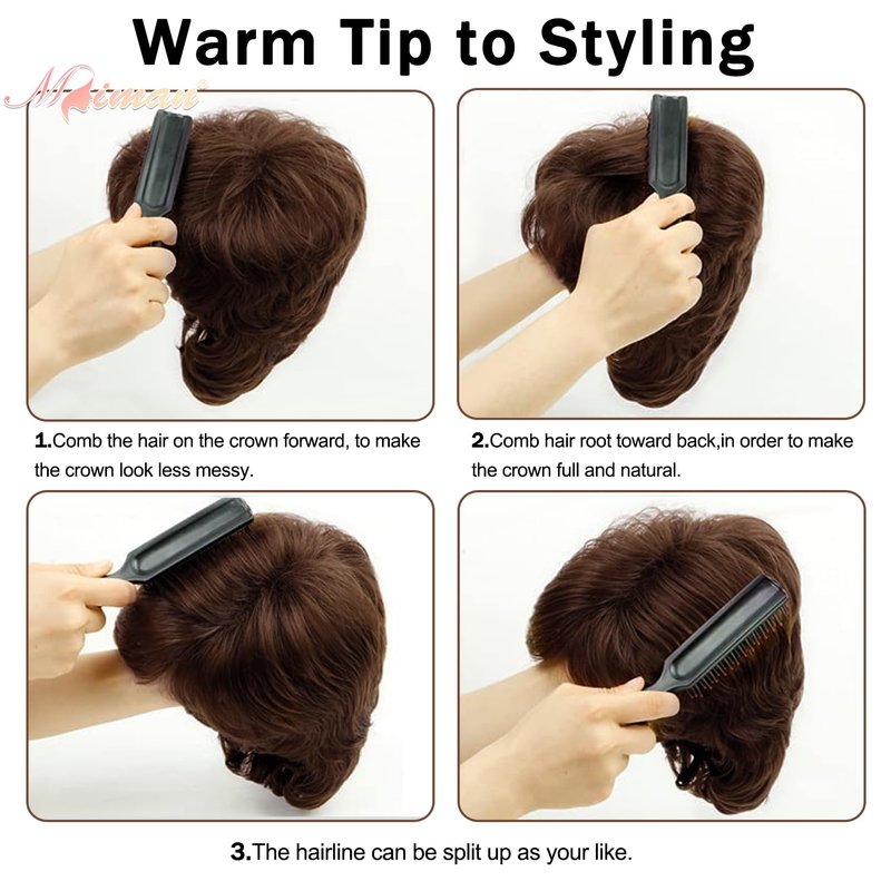 - Everyone Is Their Own Stylist: Special Tips for short hair styling: Shake the Hair Wig 2-3 times to make the hair fluffy; Use a comb to comb the hair on the top of the head (the crown) from the root to the back to make the hair fluffy; Use your hands to make the hair texture out. The wig can be trimmed a little to get the right length you like.