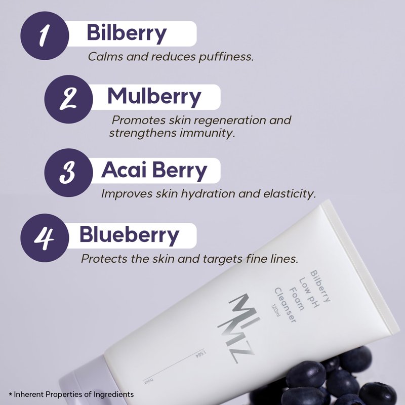 - Perfect First Step of Your Routine: Use MIMZ Bilberry Low pH Cleanser to leave your skin fresh, clean, and ready to absorb the benefits of your skincare routine. Pair with the rest of MIMZ Bilberry Line for better results.