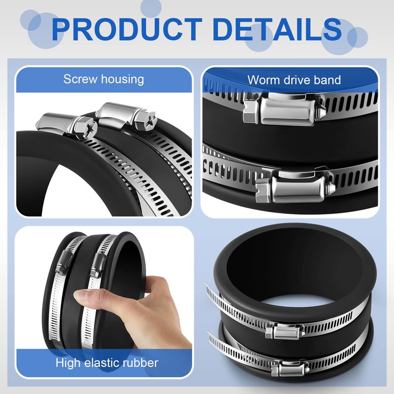 - Easy to Install: flexible pvc coupling with stainless steel clamps can be installed easily, and you can remove it without screws or tape; Each clamp has a universal nut, which can be tightened with a screwdriver or an appropriate socket wrench, please note that screwdriver and socket wrench are not included