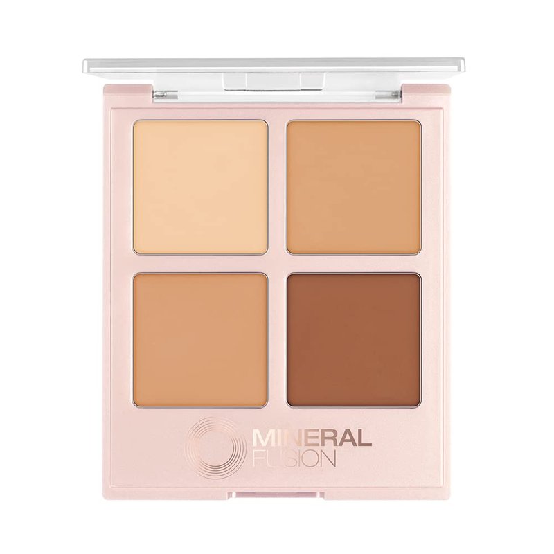 Mineral Fusion Makeup Concealer Palette Quad, 4 Warm to Deep Shades, .35 Oz, Decadence, Cream Contour Palette with Vitamin E & C, Blendable Concealer for Dark Circles, Flaws & Blemishes