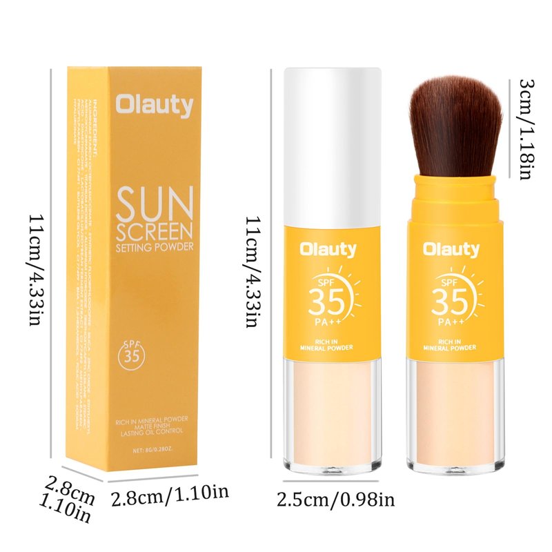 - 【How to use】Before use, please invert the product so that the sunscreen setting powder reaches the end of the brush head. After applying your make-up, brush our setting powder evenly over your face to set your makeup. The mineral setting powder allows you to set makeup, mattify shine and refresh protection for your skin in one swoop. Compact and portable design makes quick make-up touch-ups easy.