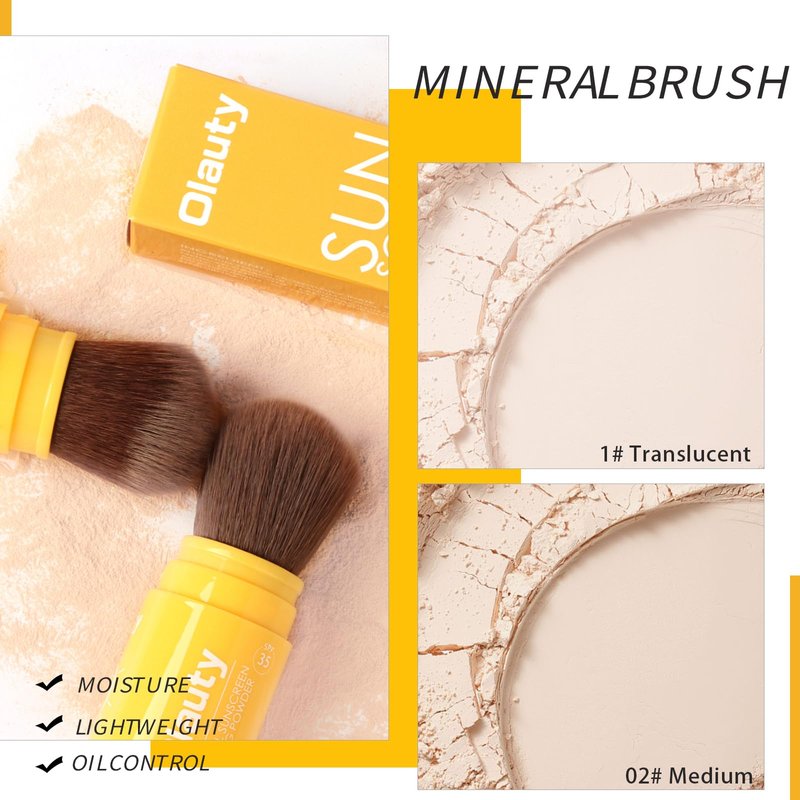 Mineral Sunscreen Setting Powder, SPF 35, Translucent Brush Setting Powder for Face, Long Lasting Oil Control Matte Loose Powder, Lightweight, Breathable (01# Translucent)