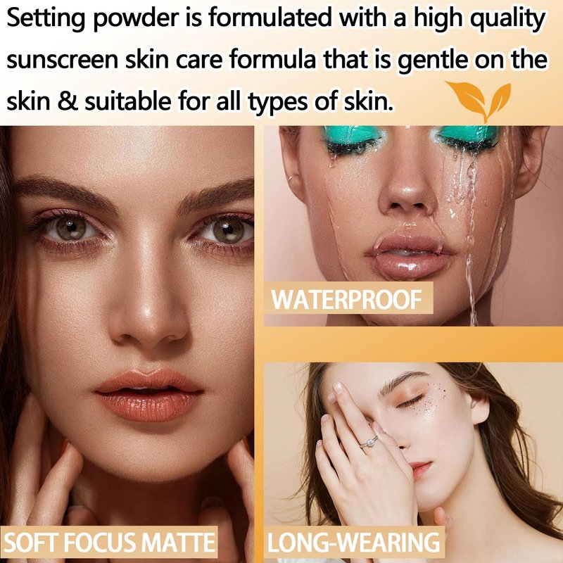 - 🔶【Lasting Oil Control & Setting Makeup】Setting Powder delicately controls and absorbs excess oil from the face, leaving your make-up matte and non-greasy all day long. The powder is very fine and lightweight, not easy to clump, easy to apply, so you can quickly get a delicate and perfect makeup.