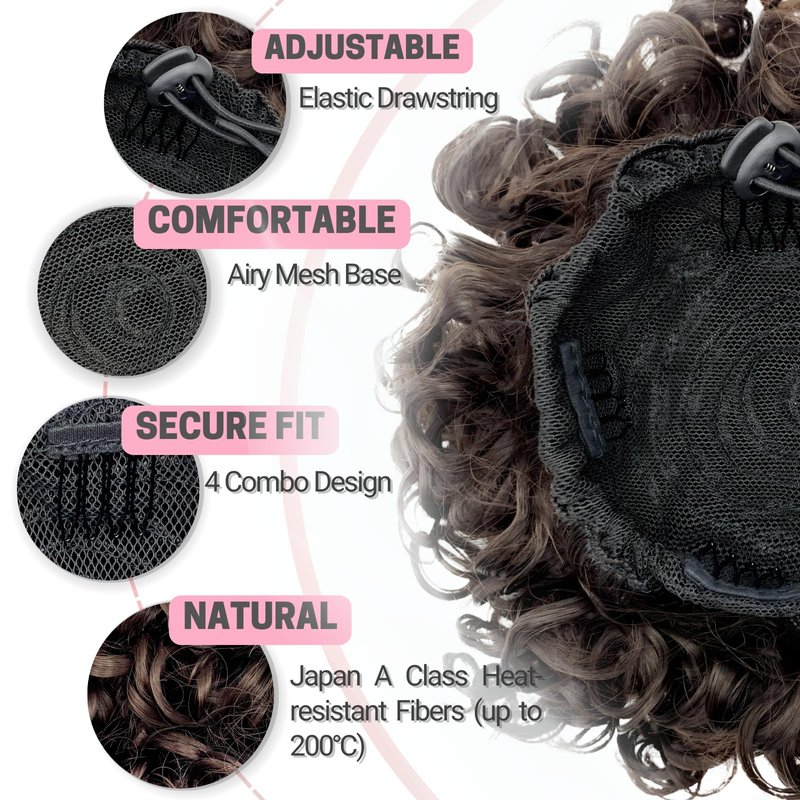 MINGATEC Curly Hair Bun, Messy Bun Hair Piece, Hair Buns Hair Piece, Messy Bun Hair Scrunchie, Elastic Drawstring Loose Wave Curly, Curly Bun Extensions for Women Girls (Dark Chocolate Brown)