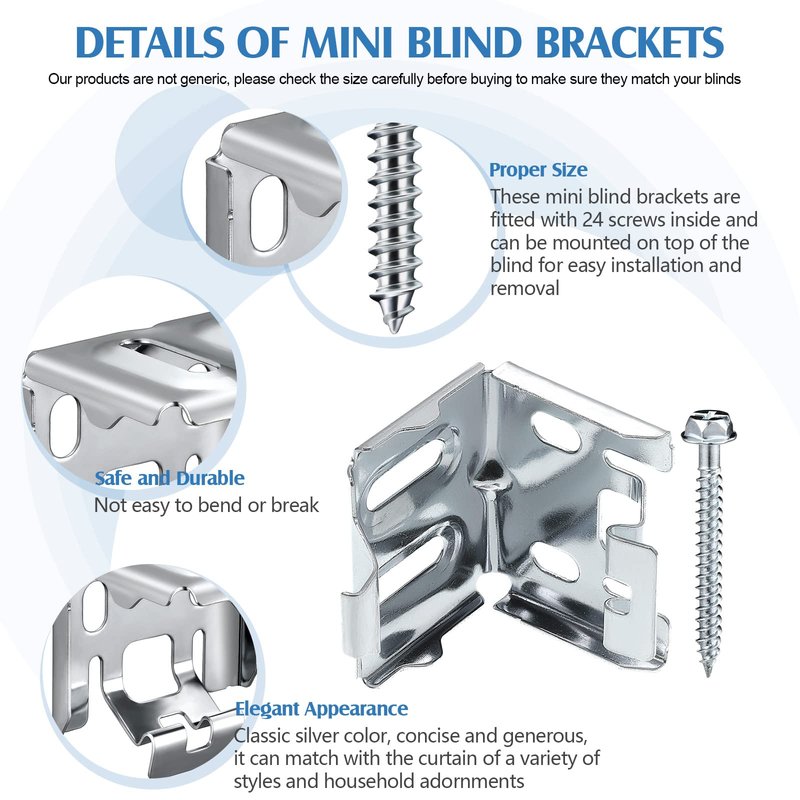 - Suitable size: these mini blind brackets come with 24 pieces screws inside, can be applied to the top of blind frame, side or back side of wind casing, easy for your installation and removing; If you do not know how to use, please contact us