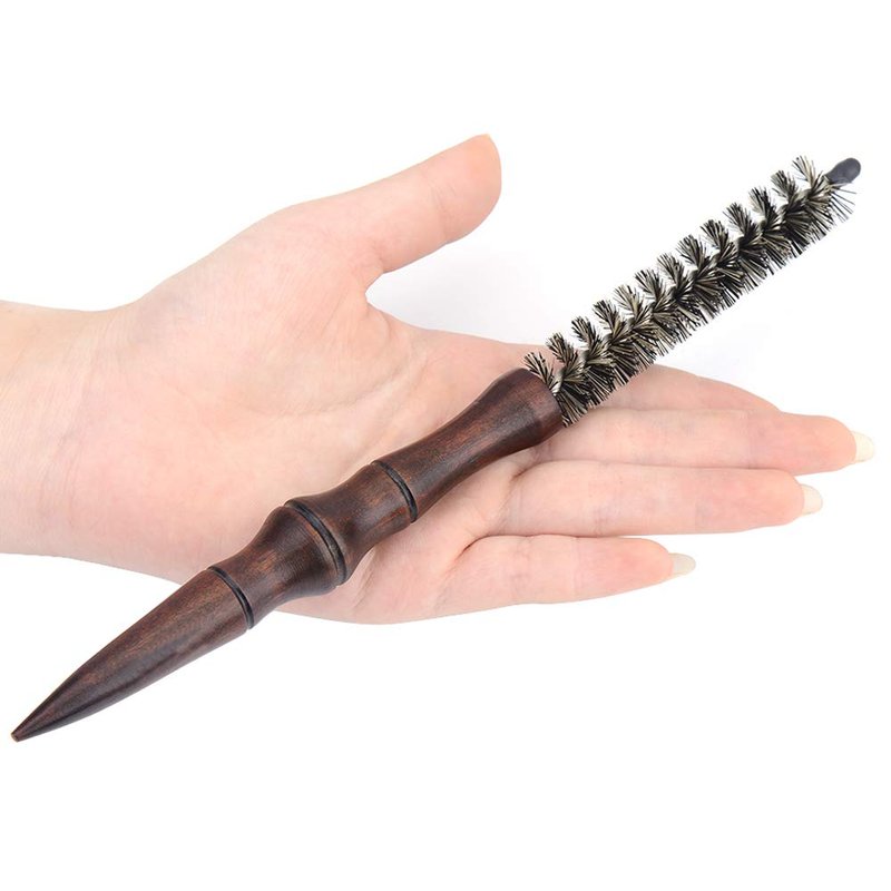 Mini Boar Bristle Round Brush for Short Hair, Small Round Barrel Brush for Blow Drying-0.6 Inch Diameter