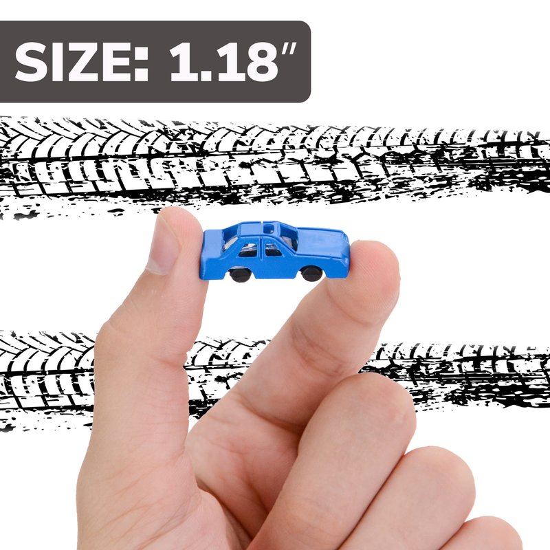 Small plastic cars party favors includes 100 pcs of small plastic toys.Feel the spirit of high-speed competition with this little car toys! These children party favors are perfectly suited to pockets, lockers, monitors, night stands - beautiful mini toys will certainly please your child. Each toy plastic cars is made from flexible plastic.Bulk prizes are cute and fascinating to play with. Little toy cars are a great pinata filler, popular goodie bag stuffers and easter egg fillers. This is not a coincident - children absolutely love playing with tiny toys.You can also use these little plastic race cars as treasure box toys for classroom or in a prizes for kids classroom and giveaway items. Package includes 100 different fun party favors - kids want to have them all.These mini car toys are the perfect companions for any game room and as treasure box toys for classroom for children. Makes the perfect pastime activity at home or school recess playtime.Use these toys as carnival kids prizes, in playful pinatas, or funny birthday party pack.Great for any kids event as party favor toys.A wonderful gift toy for Easter, Halloween, Christmas, as bulk party favors on your birthday, excellent for play with other kids party games.A great goodie bags toys and best choice for your kids - that toys very fascinating.Bright colors and attractive design - these bulk small toys will occupy your children for a long time and will give hours of exciting pastime! No boredom - just smiles and fun with friendsPlease, tell children not to put a little race cars in their mouth.
