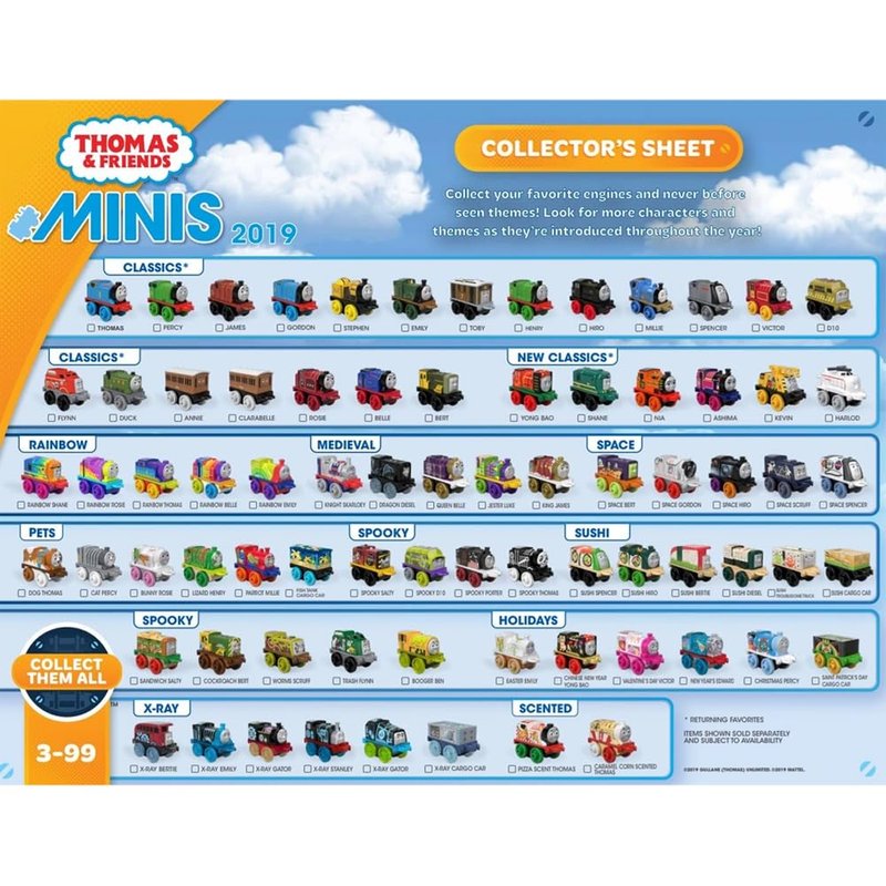 Thomas & Friends engines just got a mini makeover! With over 70 mini engines to collect! Of course, no collection is complete without your favorite characters in their styles, which is why Thomas & Friends Minis also include medieval engines in addition to other themed engines. Collect them all now!