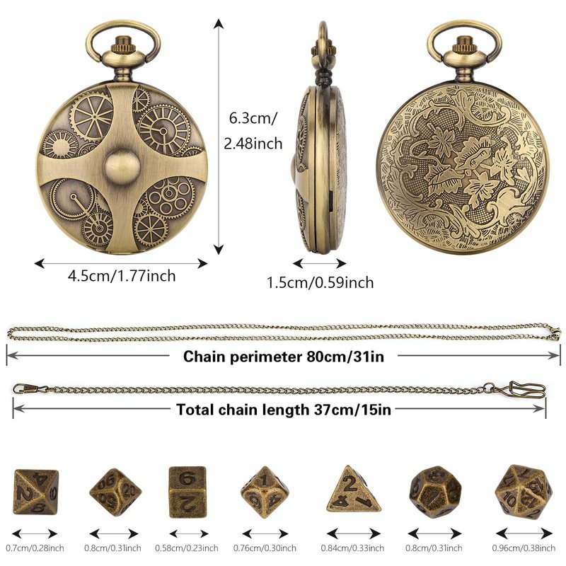 - COLLECTIBLE MASTERPIECE: More than just a functional gaming accessory, this mini DND dice set with its steampunk gear pocket watch shell is a true collectible masterpiece, appealing to dice enthusiasts and steampunk aficionados alike