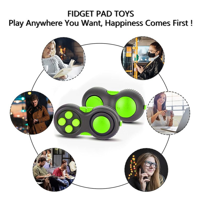 - 🎮 Fidget Controller Pad Toy 8 New Improved Functions:① A clickable rotatable joystick;② 4 clickable buttons (2 audible and 2 silent);③ Gear roller;④ A grip textured massage roller; ⑤ A clickable switch, ⑥ A spinnable dial; ⑦ A spring loaded slider;⑧ A grip textured section.
