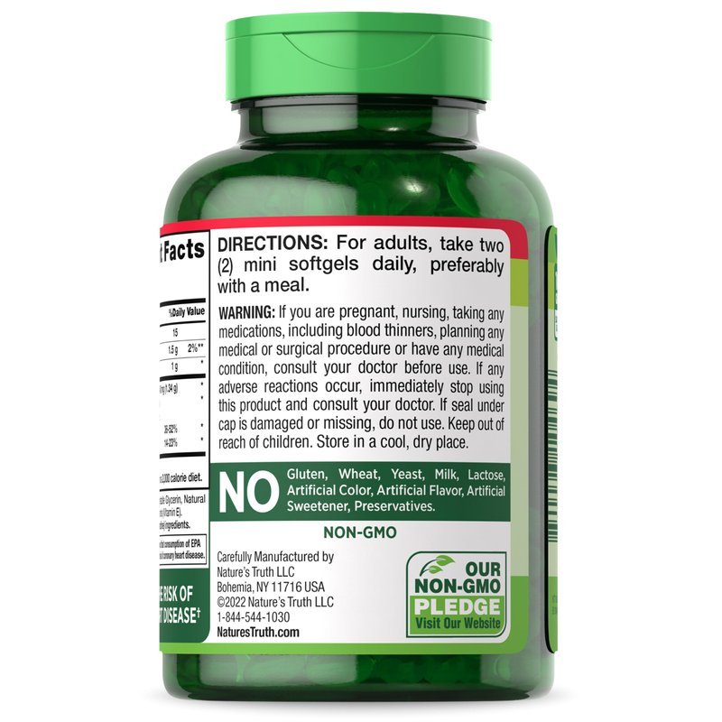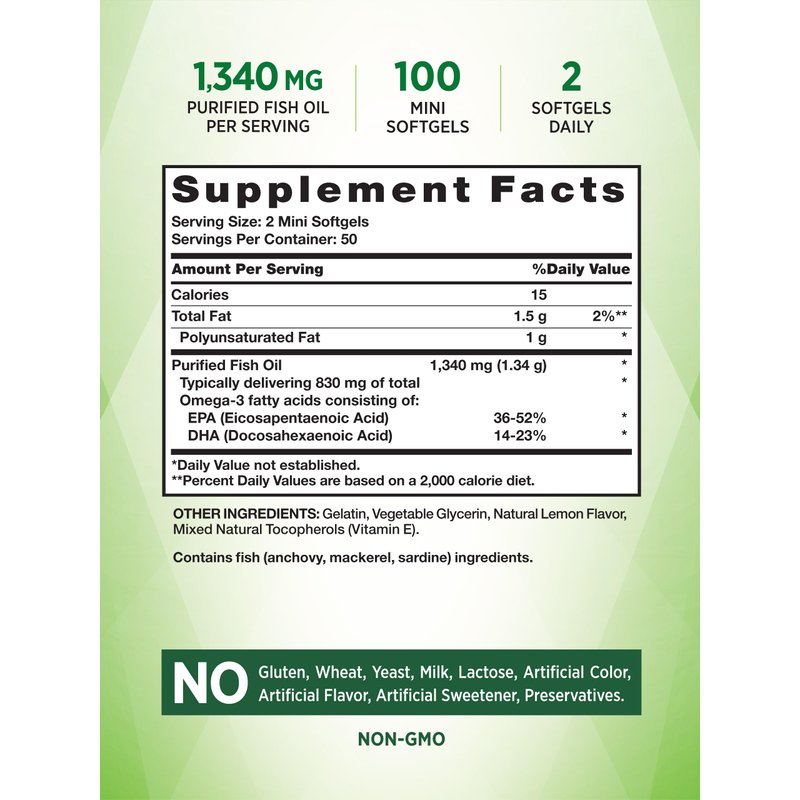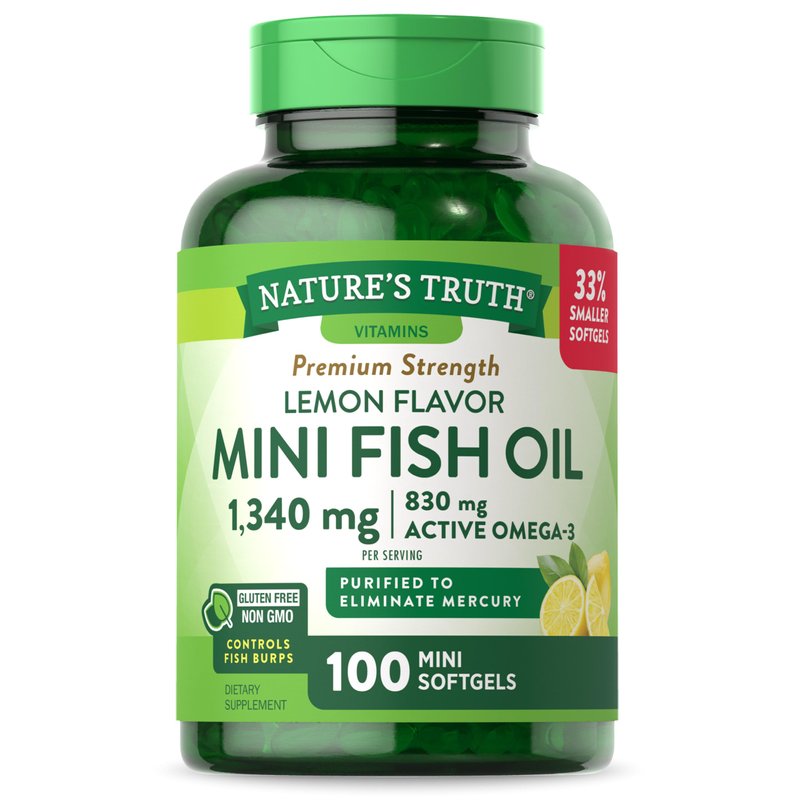 Mini Fish Oil Omega 3 | 1340 mg | 100 Softgels | Burpless Lemon Flavor Pills | Non-GMO & Gluten Free Supplement | by Nature's Truth