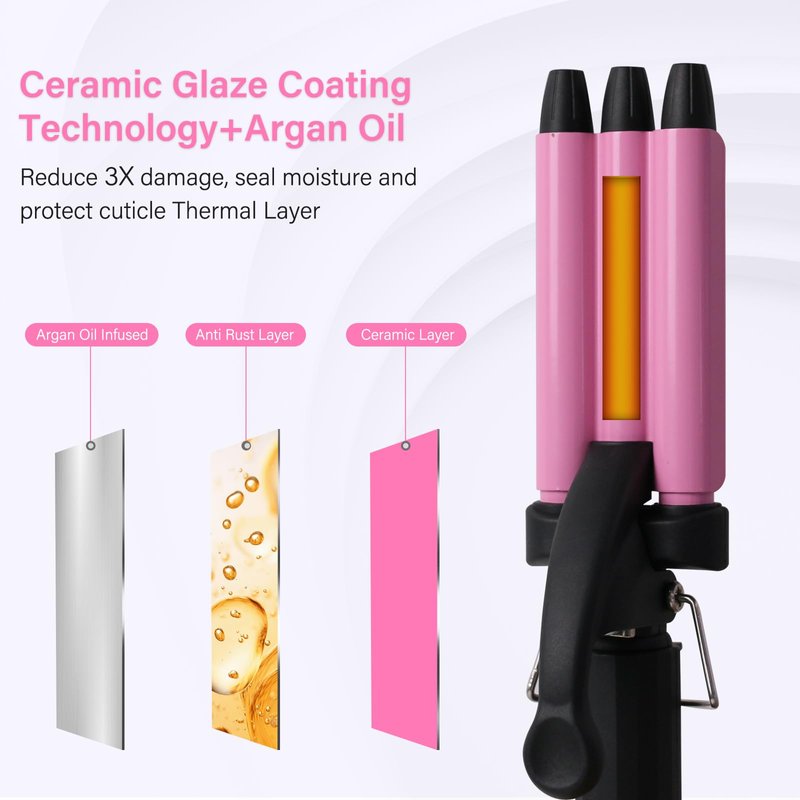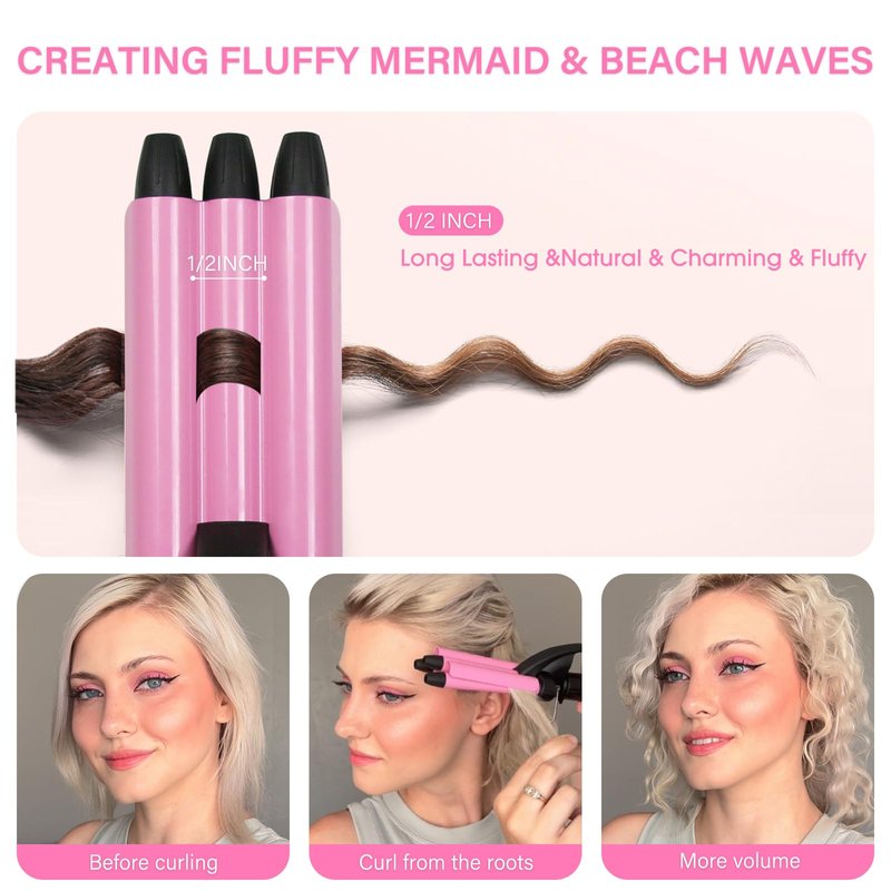 Mini 3 Barrel Curling Iron, 1/2 Inch Crimper Hair Iron Beach Waves, Dual Voltage ,Ceramic Barrel
