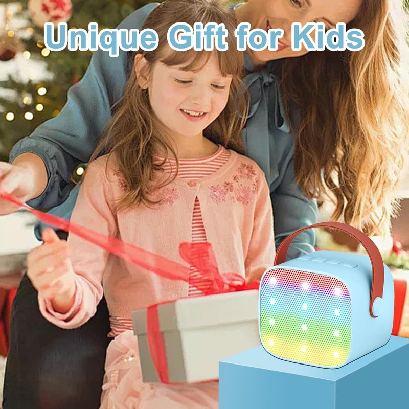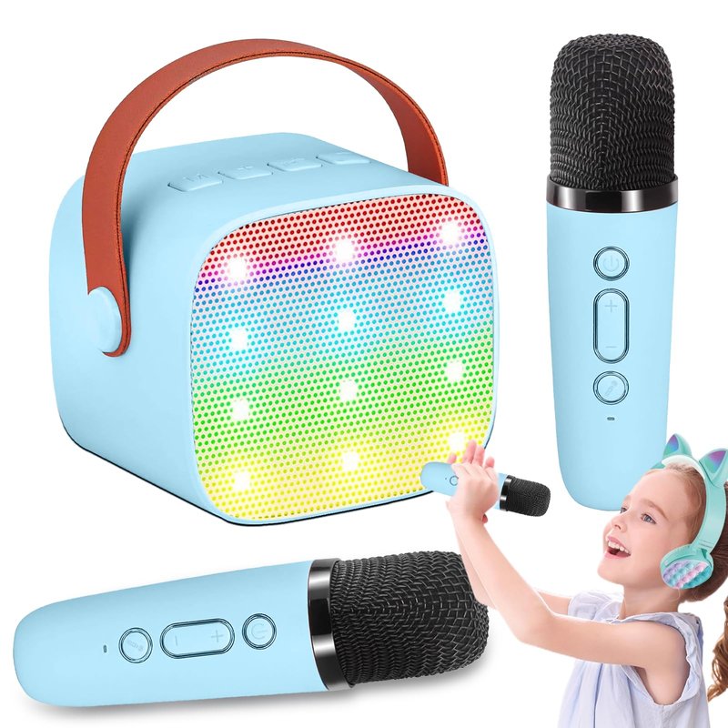 Mini Karaoke Machine for Kids Adults, Portable Karaoke Machine,Bluetooth Speaker with 2 Wireless Microphones and LED Lights, Birthday Gifts for Girls Ages 4, 5, 6, 7, 8, 9, 10, 12+ (Blue)
