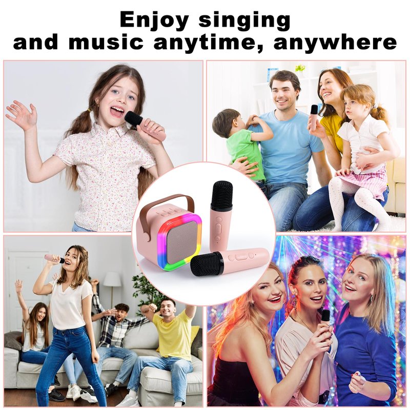 Mini Karaoke Machine for Kids & Adults,Portable Bluetooth Speaker with 2 Wireless Microphones, Toys Birthday Gifts for 3-12 Year Old Family Home Party
