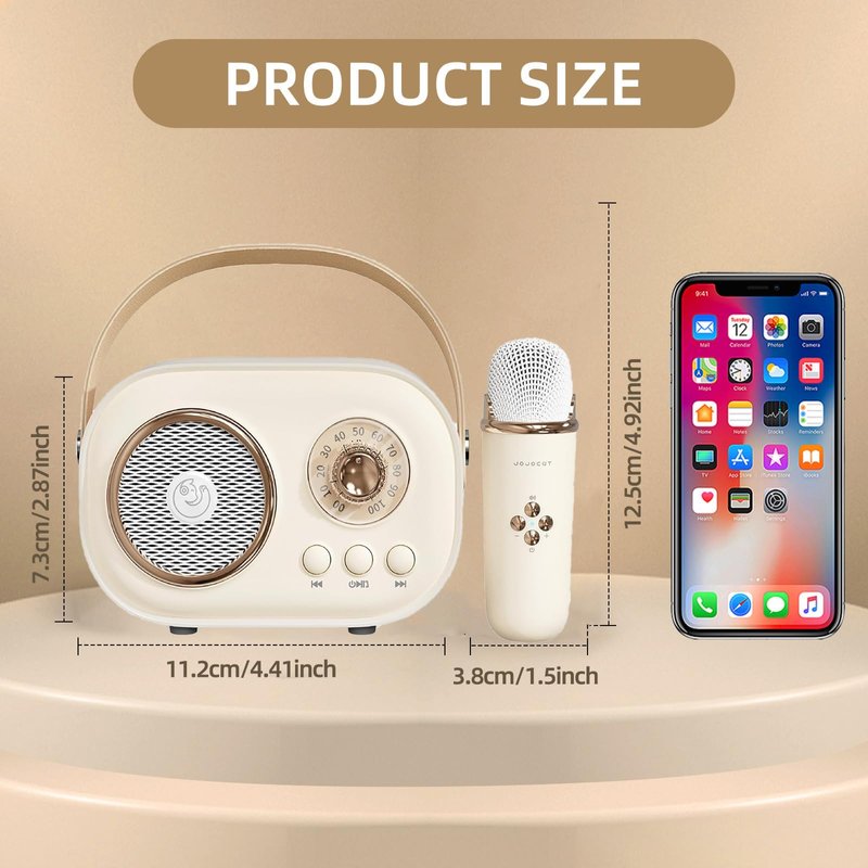 - Portable Fun: Portable bluetooth speaker withwireless microphone light weight, compact and portable, Type-C charging cable ensures quick recharges, offering up to 4hours of playtime on a single charge