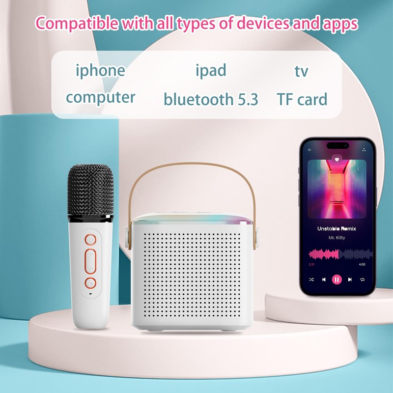 Mini Karaoke Machine for Kids,Portable Bluetooth Speaker with Wireless Microphone for Kids Toddler,Gifts for Girls and Boys Birthday (Pink 2 mic) (White 2 mic)