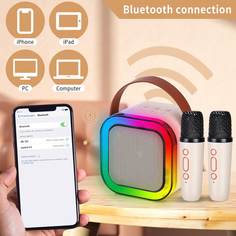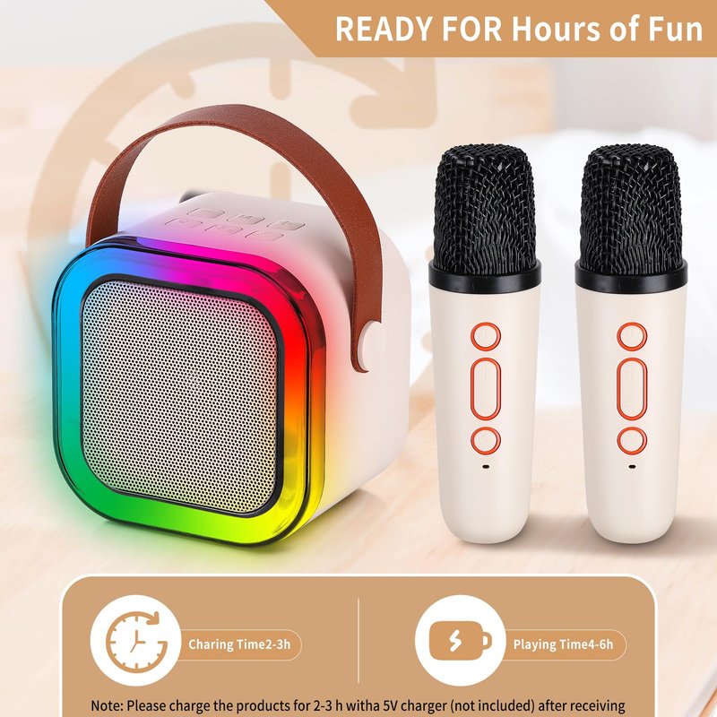 - ♫ Compact & User-Friendly-Our mini-sized karaoke machine is easy to carry, allowing your child to take their music wherever they go. Easily switch between modes and adjust microphone, echo, and music volume with ease.