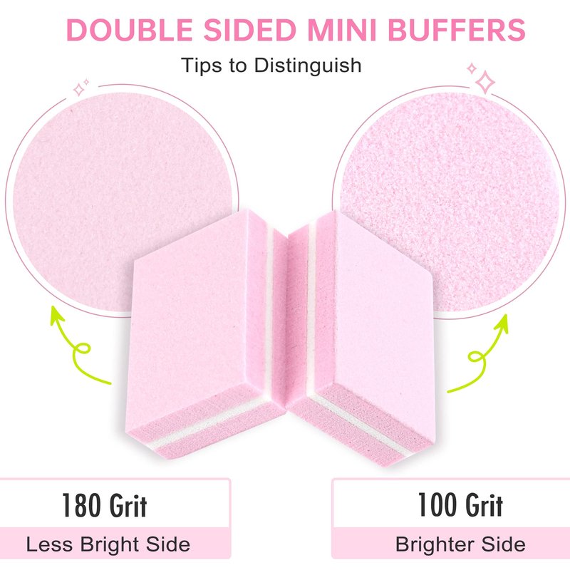 - At Home Manicure Tools - Double sided nail files sanding buffers are designed with 100/180 grit suit for both acrylic nails and natural nails. What's more, buffers are washable and reusable if needed, great for home DIY nail art! Mini size makes them portable everywhere.