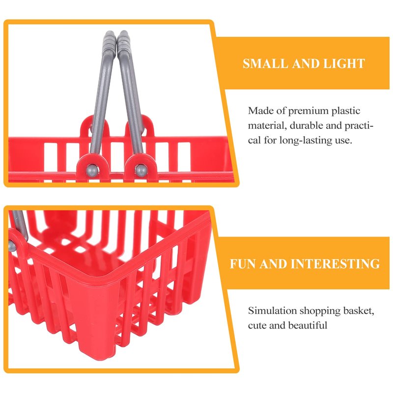 - ✨ Small plastic basket: Mini shopping basket for your play game, role play, scene simulation, and so on. In addition, tiny basket not can be a decor for dollhouse, DIY crafts, mini landscape, kindergarten hand- made, etc. but also can be used as a desk holder for storing all sorts of items such as pencil, flower, cosmetic, pen.