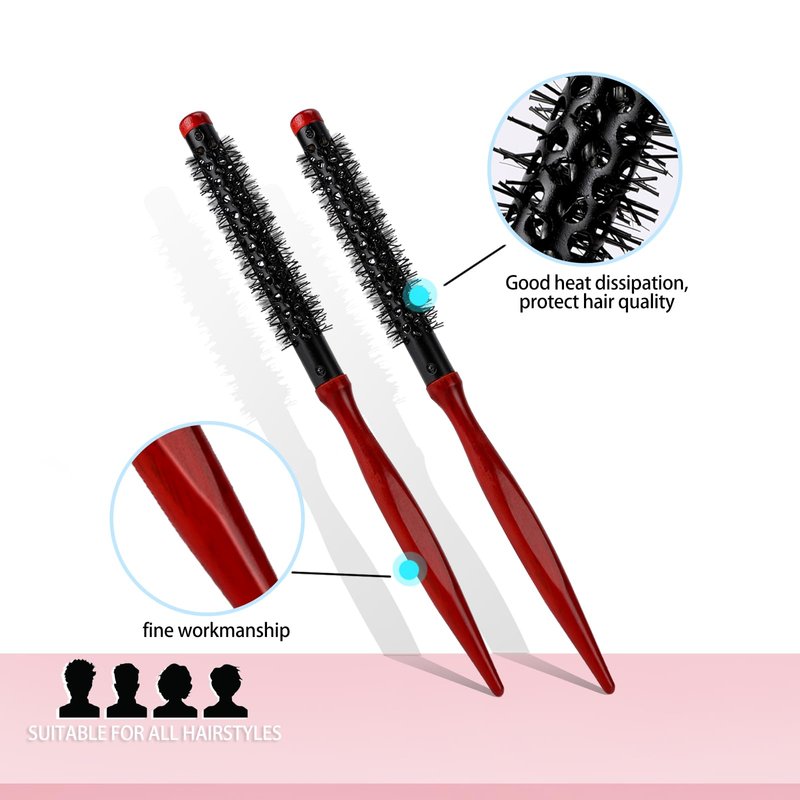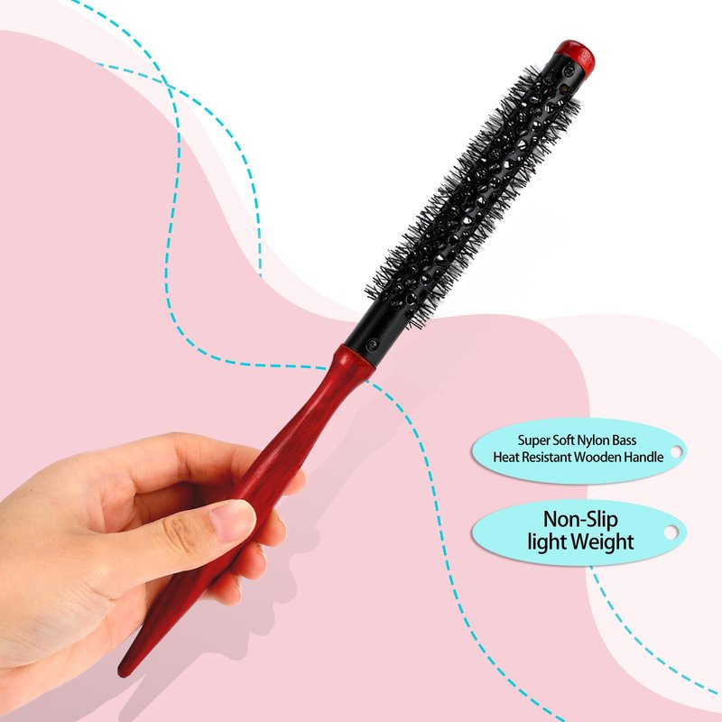 - DURABLE NYLON HAIR - The small round brush is equipped with nylon comb teeth that have good thermal conductivity. These teeth are highly resistant to breakage during high temperature spraying or cleaning, and they maintain their shape without deformation.
