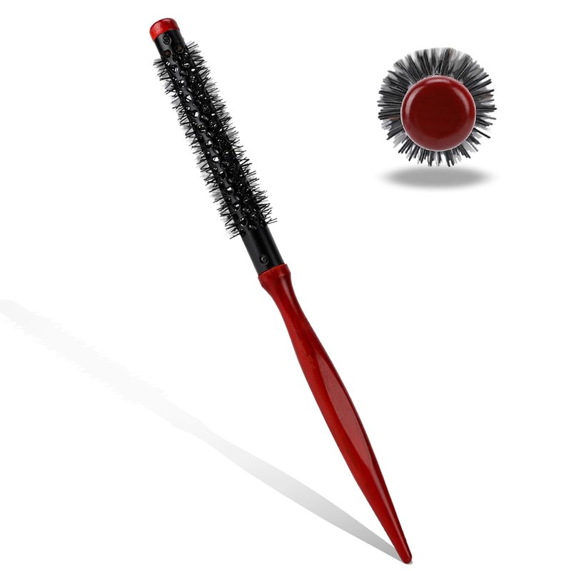 Mini Quiff Roller Brush for Blow Drying and Curling - 1/2 Inch Portable Travel Brush with Wooden Handle and Nylon Bristles for Styling Short, Fine Hair