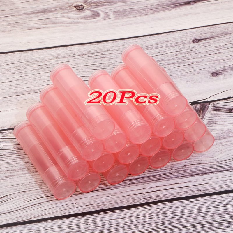 Mini Skater 20Pcs 3/16 Oz (5.5ml) Translucent Lipstick Cosmetic Empty Lip Gloss Lipstick Balm Tube With Caps Container Bottle For Lady Women Makeup Tool (Pink)