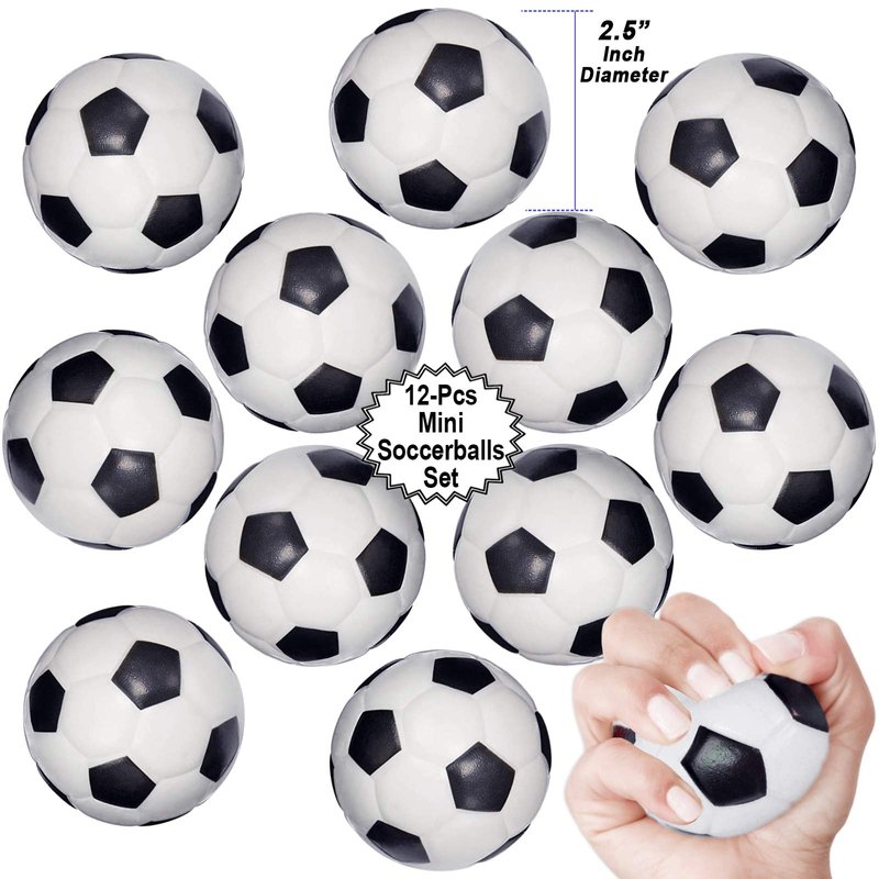 Mini Sports Balls for Kids Party Favor Toy, Soccer Ball, Basketball, Football, Baseball (12 Pack) Squeeze Foam for Stress, Anxiety Relief, Relaxation. (12 Pack (Soccer Balls))