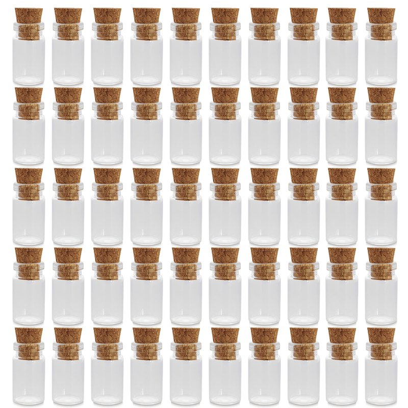 Mini Tiny Clear Glass Jars Bottles with Cork Stoppers for Arts & Crafts, Projects, Decoration, Party Favors - Size: 18mm x 10mm Diameter (50 Pack)