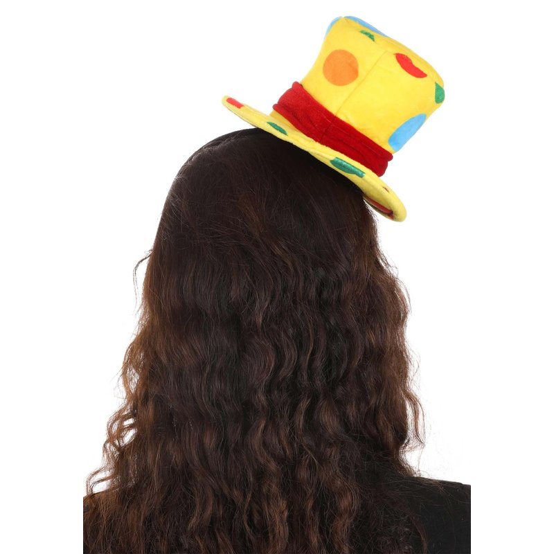 - Vibrant Elegance: Stand out in style with this Mini Yellow Clown Top Hat for Adults! The velour headband and foam backing ensure both comfort and durability, while the colorful polka dots add a playful touch to any outfit or costume.