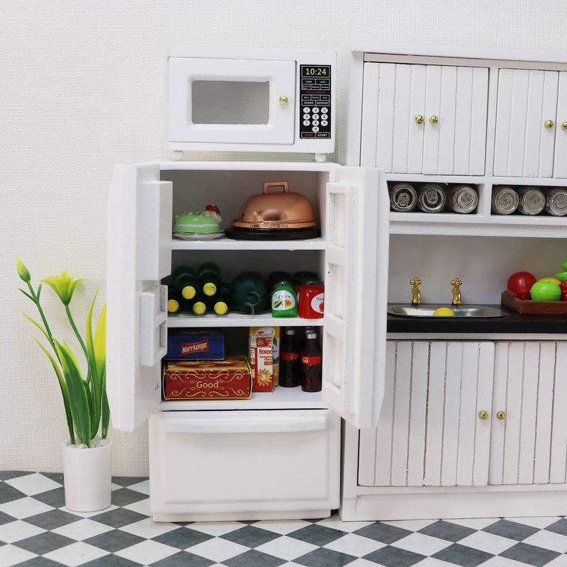 - Our dollhouse refrigerator is designed for 1:12 scale dollhouses. This is the perfect addition to the dollhouse living room scene