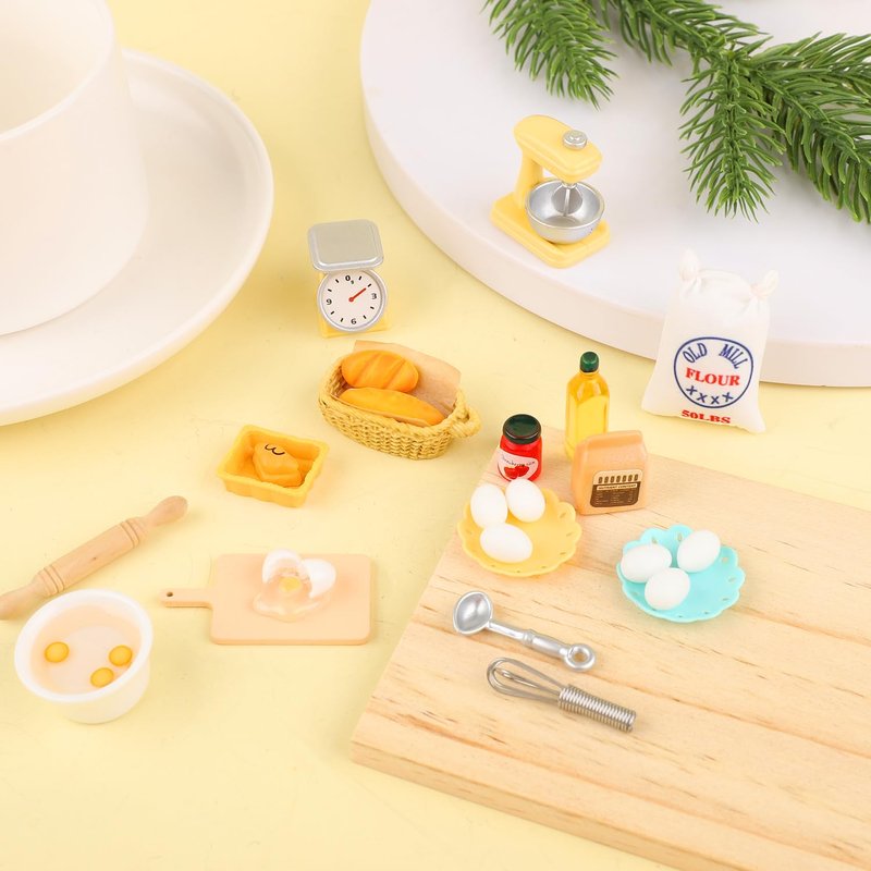- Package Includes: You will receive a set of kitchen miniatures, with sufficient quantity and designs, including flour, egg, rolling pin, mixer, bowl, bread basket and so on, allowing you to play with your partners and bring happiness.