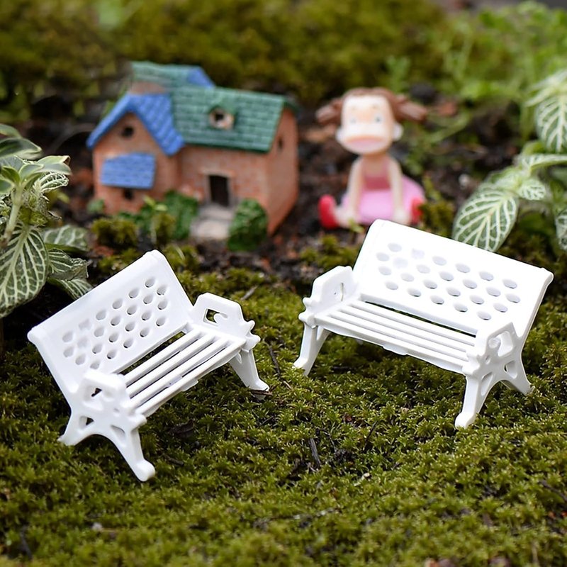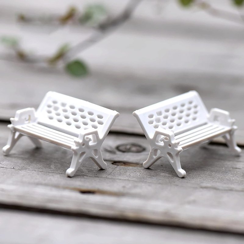 - Miniature Garden Decor: This set includes 2 pieces of miniature white park benches, perfect for adding a touch of charm to your fairy garden or dollhouse.