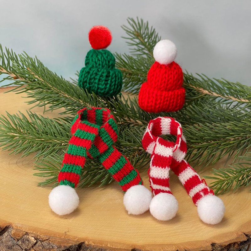 - Miniature knit hat and scarf. Two color combinations to choose from. Perfect for your dollhouse, fairy garden or craft project. The set can also be used as accessories for christmas decoration, diy snowmen, elf props, and figurines!