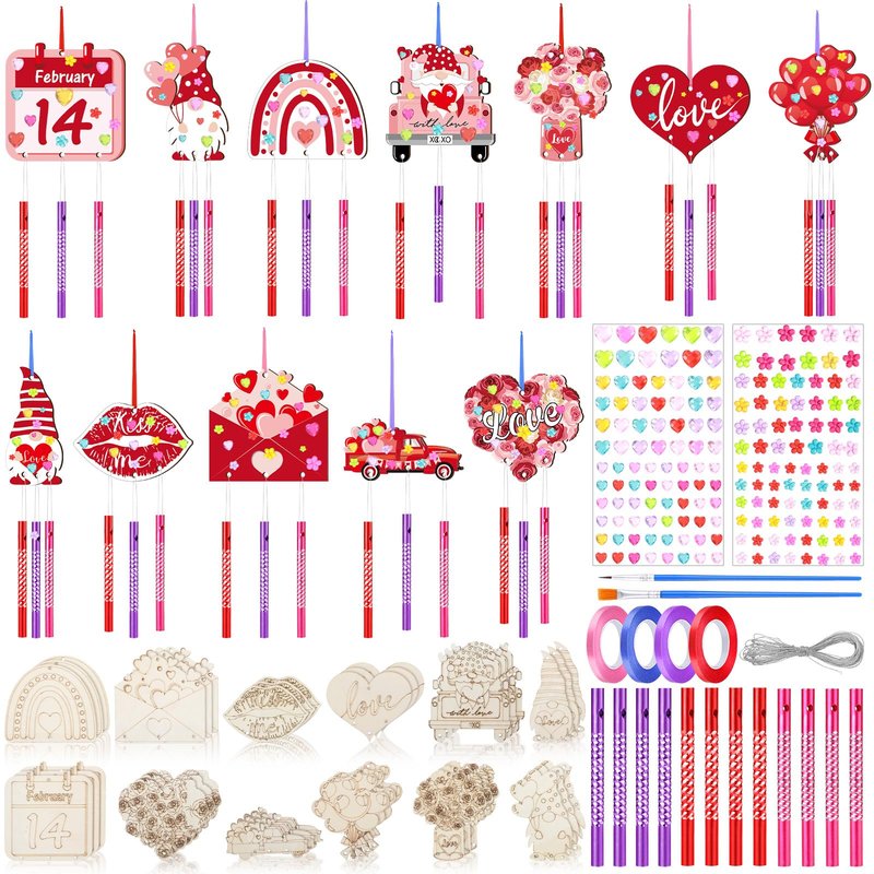 - Nice Crafting Gift: enjoy the fun of creation with our wind chime kit; With Valentine's Day wooden pieces, chime tubes, stickers, and multiple colors of ribbons, you can make your own home decoration to gift or keep