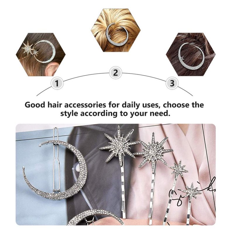 - 【Easy to use】Just push the star hair clips gently into the hair or braid, the loose hair will be fixed, or you can fix it in the right place to decorate your hairstyle, the cute moon hair accessories make your hairstyle more beautiful.