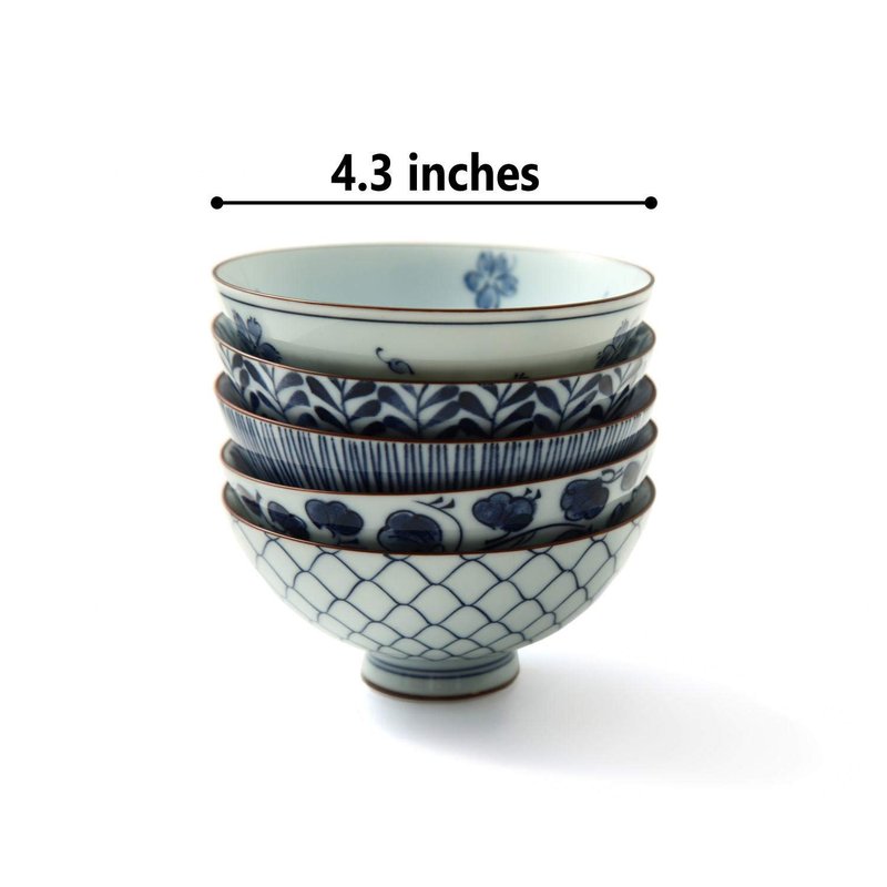 - EXQUISITE DESIGN: The hand-painted bowls come in 5 different designs, which are very popular in Japan. The bowls are painted in white and blue, with floral patterns, lines, or leaves. The traditional design is elegant and creates a warm, cozy atmosphere for you to enjoy with your loved ones.