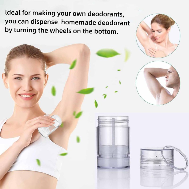 - ✔Easy to use: Refillable empty deodorant containers with twist-up and visible content design, every container has a turning screw mechanism, adjusts up and down perfectly. You could dispense your own deodorant by turning the wheels on the bottom. Great for making your own deodorant at home!