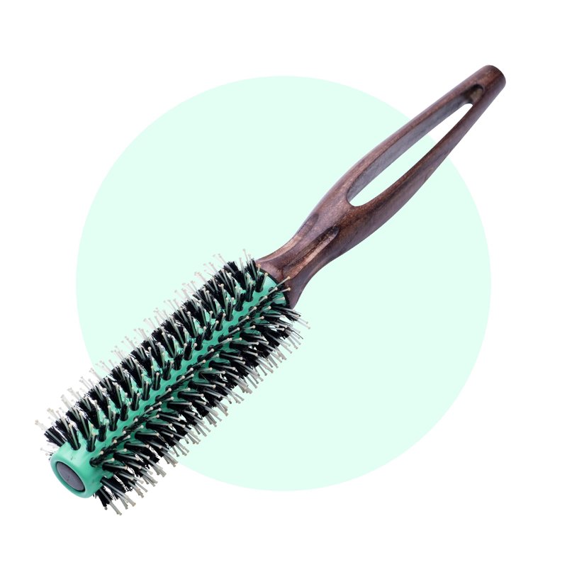 MINT Eco-Friendly Boar Bristle Round Brush for Blow Drying | Durable Blowout Styling Brush for All Hair Types | Ceramic Round Brush with Hand-Crafted Wooden Handle (20 mm)