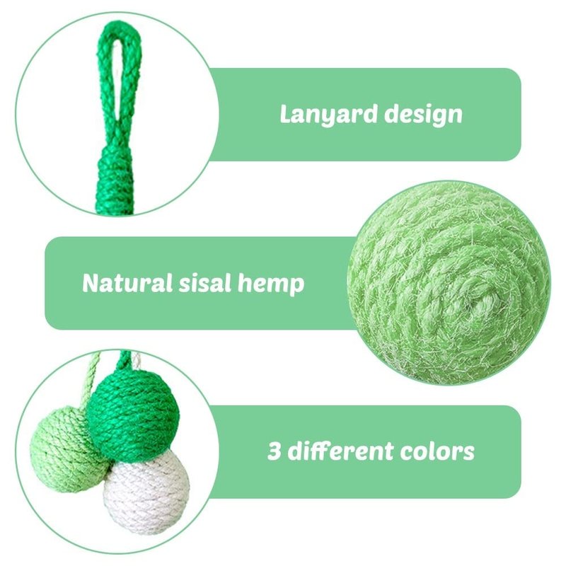 - HANGING DESIGN: Hanging sisal balls can be hung in cat cages, cat tree climbing ladders, cat climbing post door knobs, table and chair legs, etc., so that cats can play, scratch and bite, and reduce cat damage to indoor furniture.
