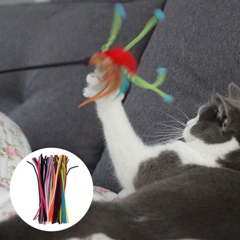 - Size: About 30 x 0.6 x 0.6cm cat plush stick toy pet stem plaything cat wool top toy DIY chenille stems plush stick for cat cat spring toy thin cat spring toy medium size cat spring toy 60.