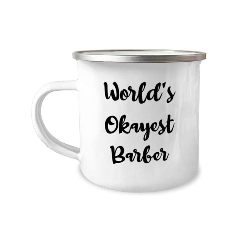 MIPOMALL World's Okayest Barber 12oz Camper Mug, Barber, Beautiful Gifts For Barber from Boss, Haircut, Barbershop, Gift card, Gift certificate, Hair