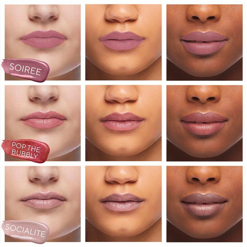 - Includes 3 Bold, Matte & Shimmer Shades – Included in the 3 piece lip gloss set are 3 versatile shades to make any head turn—Socialite (light nude tone), Pop The Bubbly (shimmer gloss in rose bronze), and Soiree (pigmented dusty pink)—designed to suit every skin tone for any look.