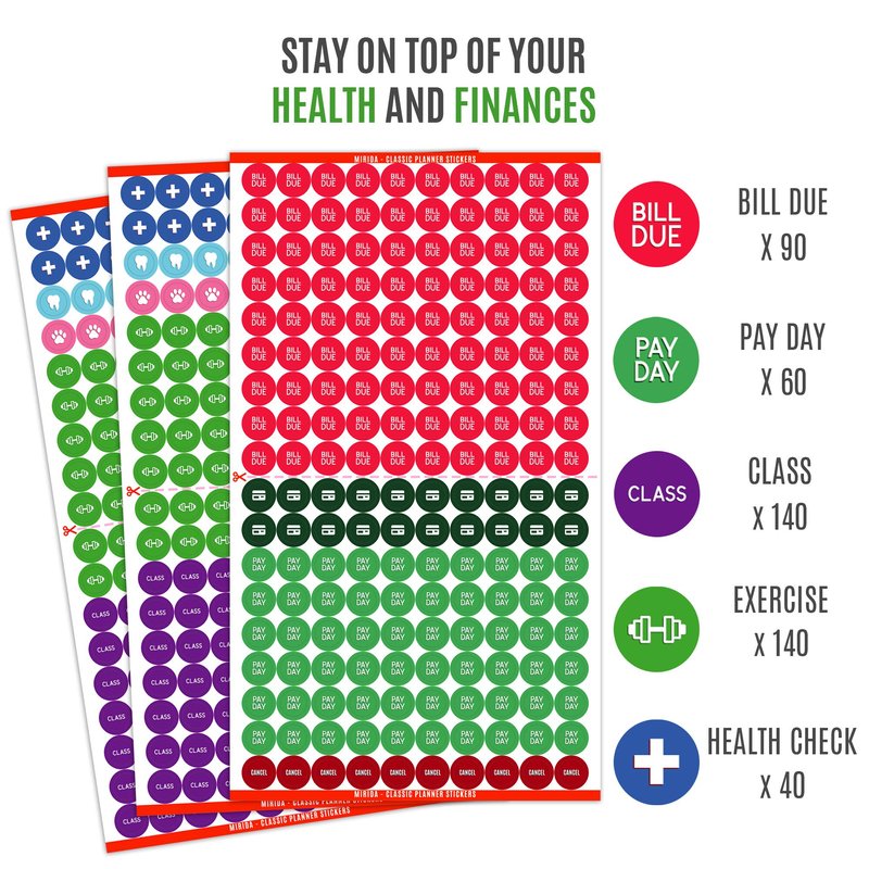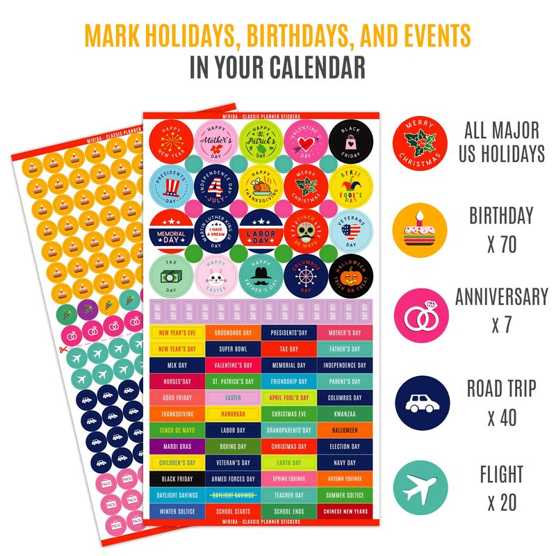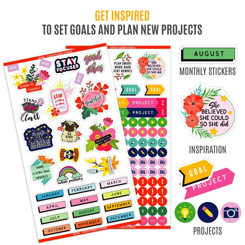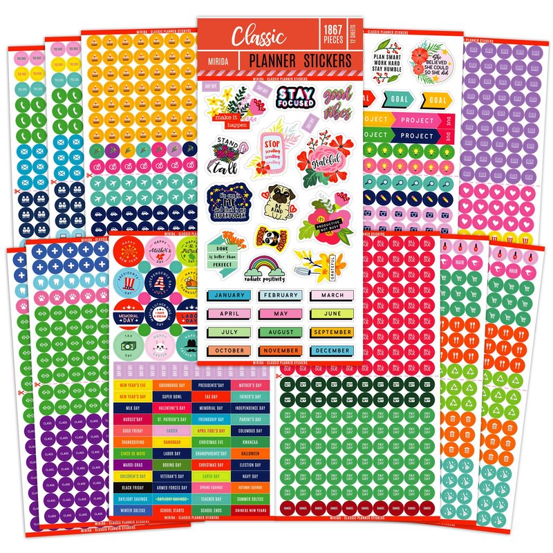 Mirida Planner Stickers – 1867 Daily Icons and Inspirational Stickers for Adults Calendar, Classic Pack for Budget, Work, and Holidays