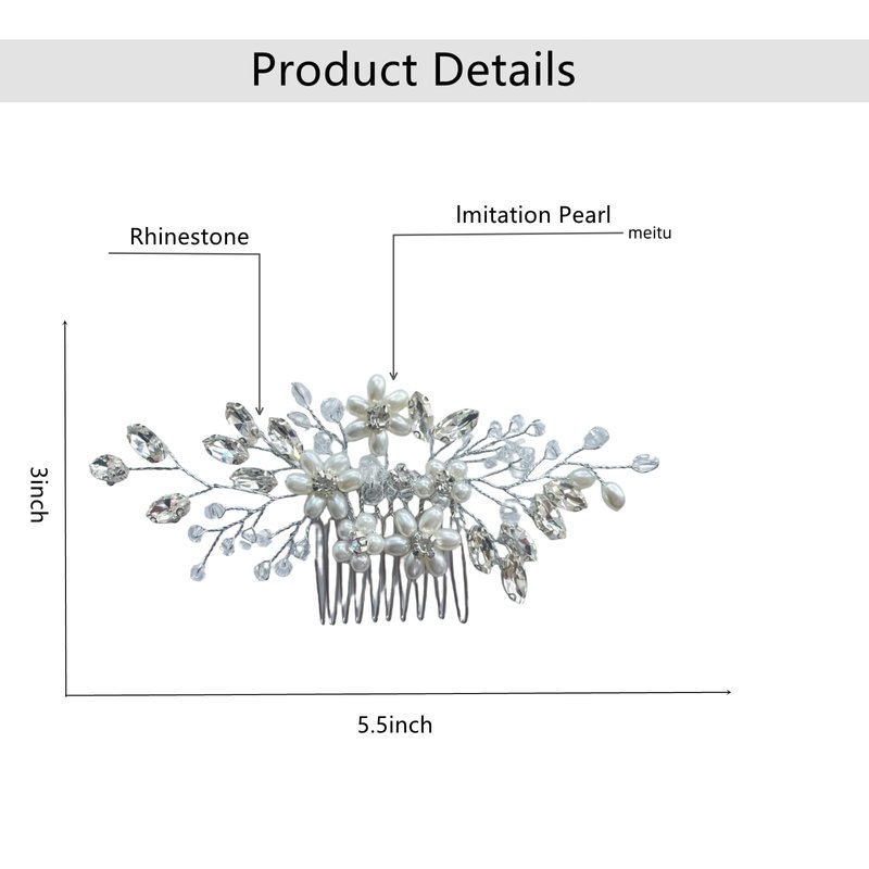 - 【Adjustable Size】Bridal hair comb is measured approx 5.5 *2.5 inches, Handmade products can be adjusted with the desired look to adjust the shape, will lead to a slight size difference.