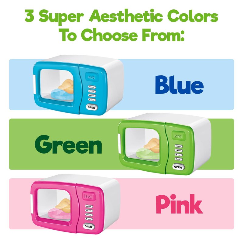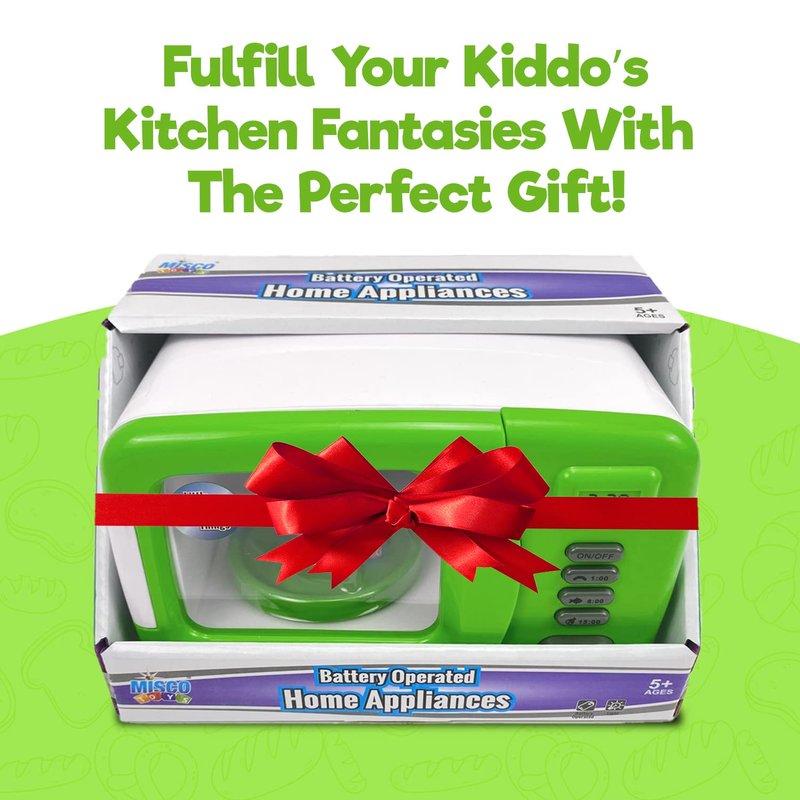 Misco Toys Kids Microwave Kitchen Appliances, Childrens Microwave Oven Pretend Play Appliance Set for Toddlers, Cookware Toy Set, Real Function Lights and Sounds, Ages 3+ (Green)