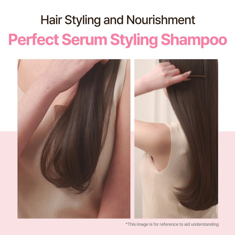Mise En Scene Perfect Serum Styling Shampoo, Hair Nutrition and Styling Dual Care, Premium Gel to Foam Formula, Nutrition Coating Effect with 7 Natural Origined Oil - A shampoo that cares for damaged hair & provides styling memory effect that lasts all day. - Gently cleanses hair & scalp of dirt & buildup with a mild formula. - Enriched with a blend of 7X Golden Oil including Argan oil, olive oil, jojoba oil, Marula oil, apricot oil, coconut oil & cameliia oil to a soften & nourish hair. - Provides powerful & Instant damage care for hair with full vitality. - Offers fine dust blocking effect & protection against the heat of styling equipment. - Scented with delicate powdery floral scent as if wearing perfume.