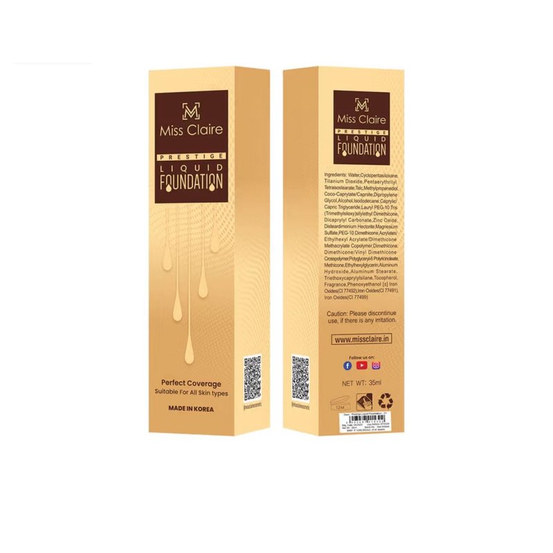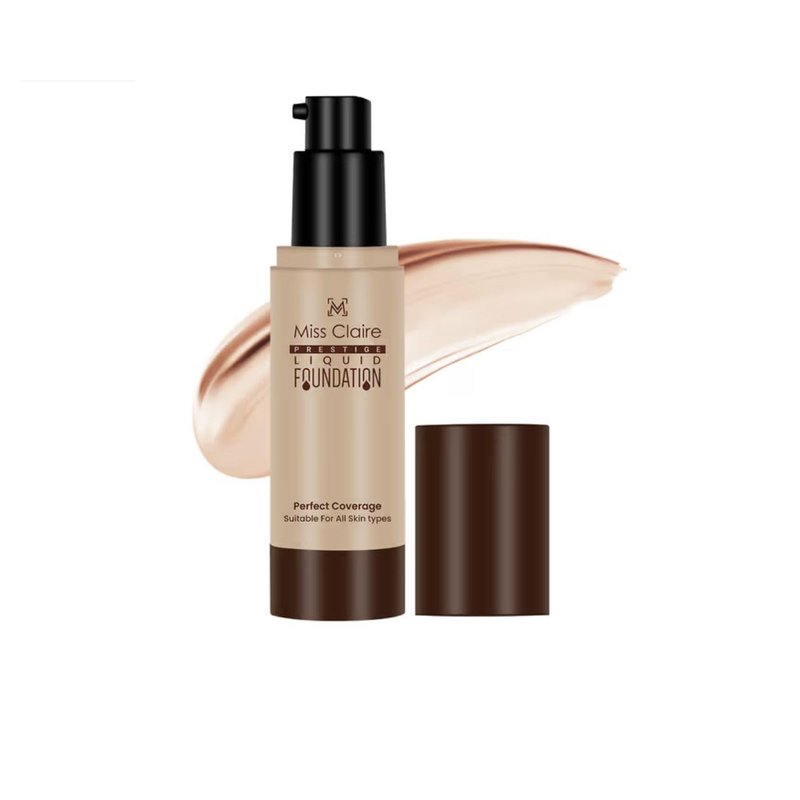 Great makeup application begins with a flawless canvas and smooth, beautiful-looking skin can be created with just the right foundation. Designed for all skin types, this Miss Claire Prestige Liquid Foundation Perfect Coverage is formulated using high-quality ingredients that won't irritate skin, while providing a perfect base for makeup. Effective moisturizing agents keep the skin supple and hydrated, allowing for long-lasting wear that doesn't feel cakey or heavy.